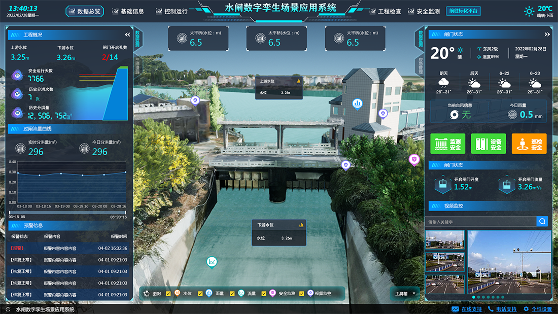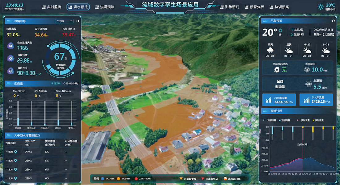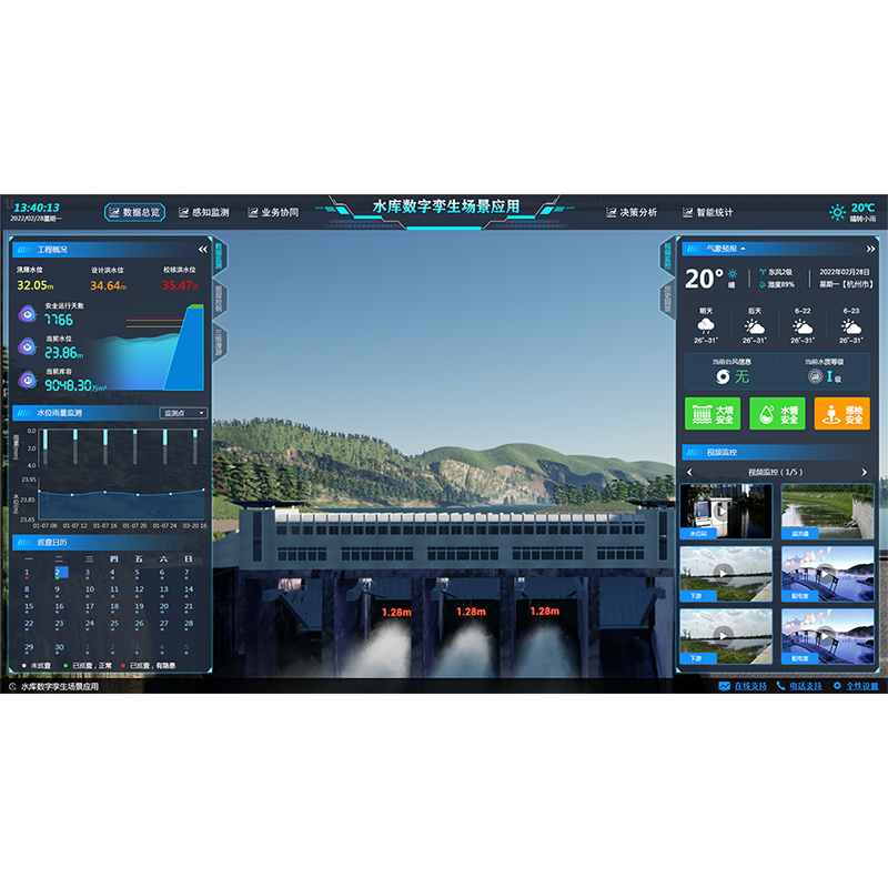水利數字孿生場景應用依托感知集成實時狀態、數據治理、GIS及BIM圖形引擎、水利專業及智能識別模型等建立強大的數字孿生底板,對物理水利工程全要素以及管理過程進行數字化映射,實現可視化場景呈現,賦能水庫、水閘、泵站、灌區、海塘、流域等水利場景管理,構建具有預報、預警、預演、預案功能的智慧水利體系。